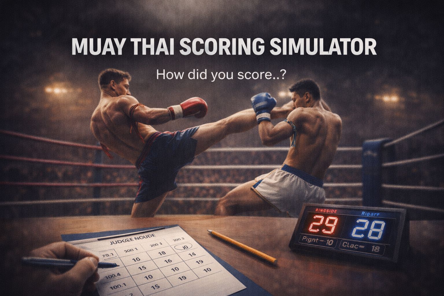 Sporting Tool Muay Thai Scoring Simulator ๐ฅ Compare both corners using a Muay Thai scoring model based on effective strikes, balance disruption, clinch control and
